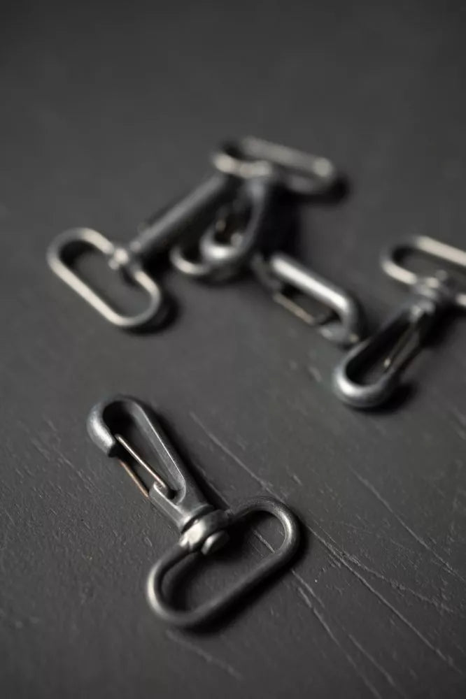 An alloy swivel hook with a 1" loop attached suitable for bag making.