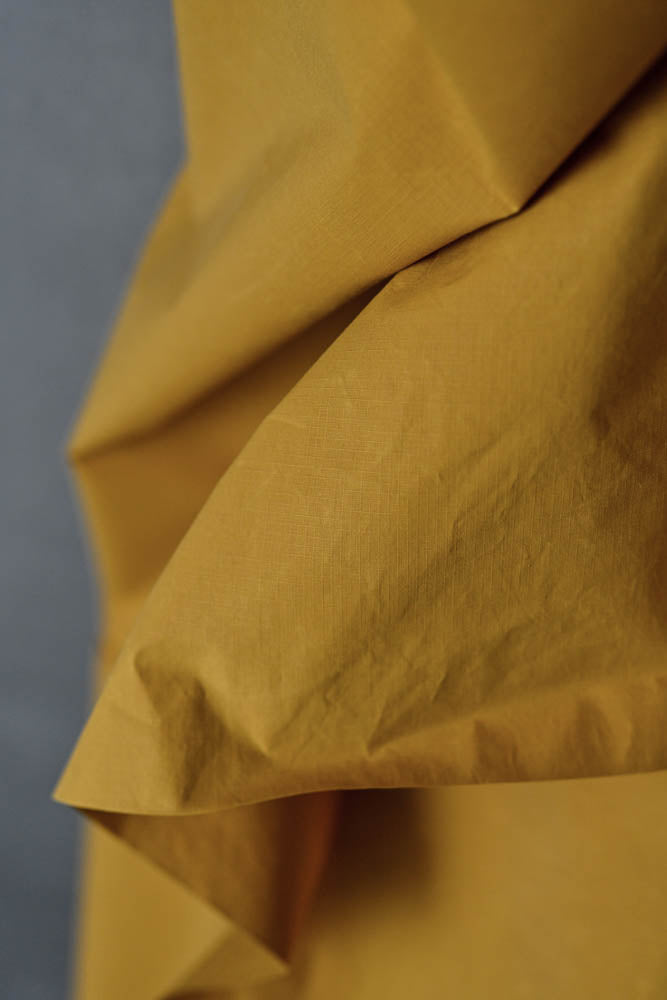 Best quality organic dry oilskin made in the UK. Rich cumin yellow, with a rip stop look, the squares are 3mm x 3mm. 100% organic cotton. 5oz/153gsm. 150cm wide. Made in the UK.