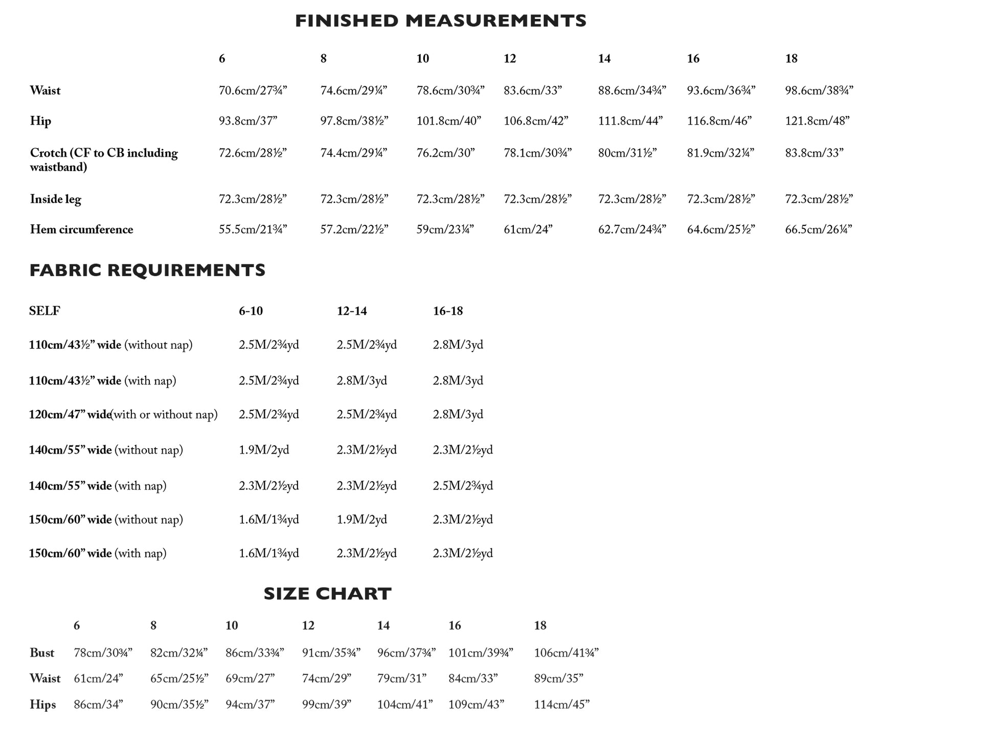 Suitable fabrics - medium weight woven fabric such as cotton twill, denim, corduroy, light to medium weight woollens and linen.